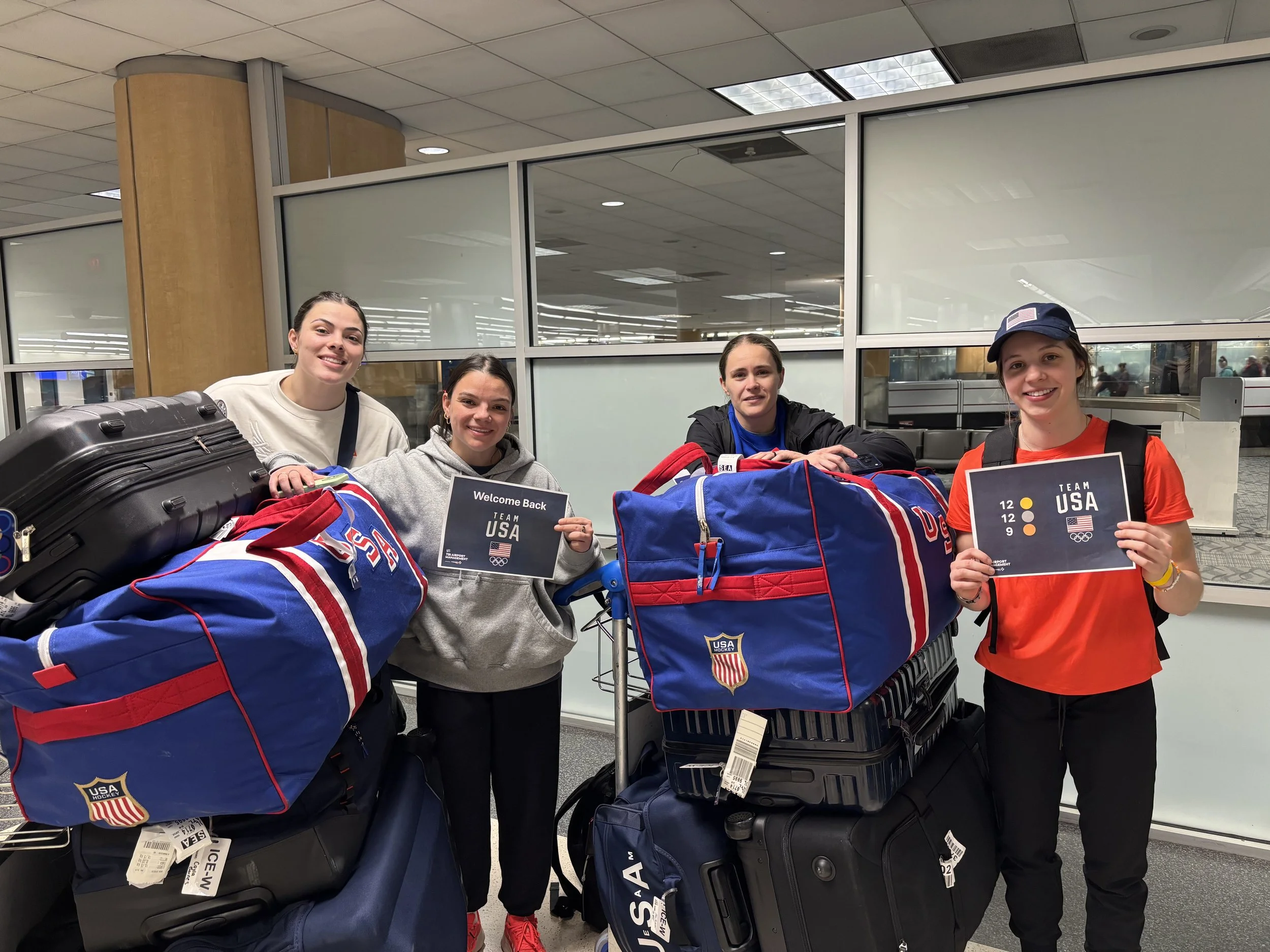 🥇Gold Medalist Joy Dune, 🥇Gold Medalist Cayla Barnes, 🥇Gold Medalist Alex Carpenter and 🥇Gold Medalist Hannah Bilka (Ice Hockey)